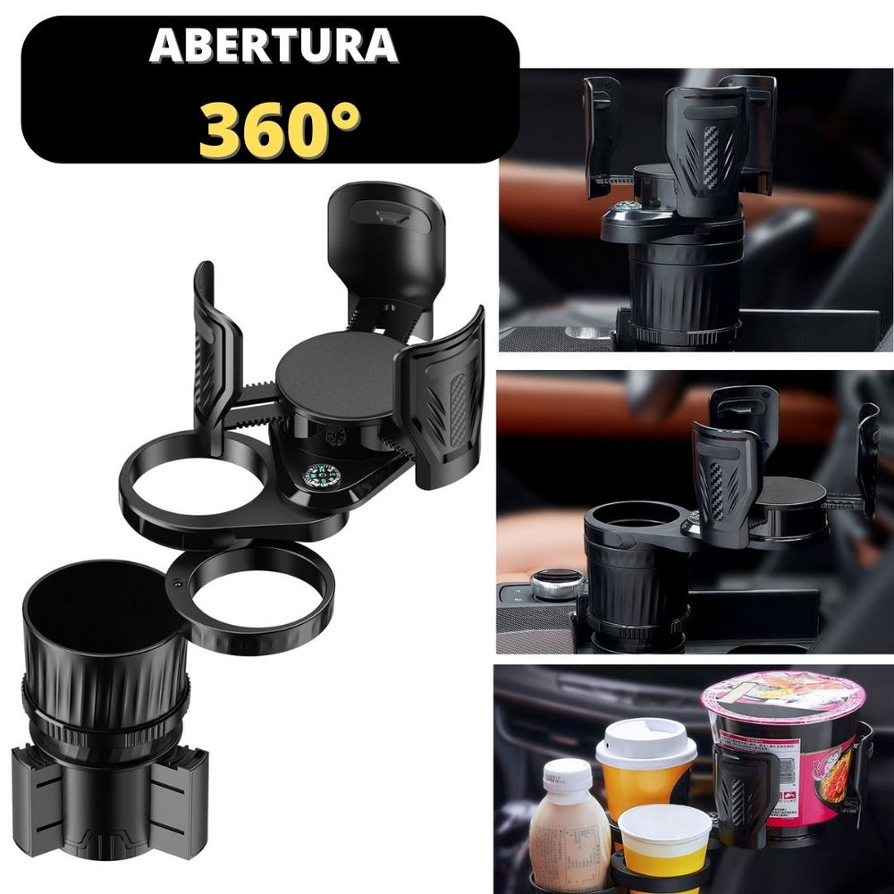 O MultiCup™ é um poderoso suporte multifuncional 4 em 1, feito para organizar de forma rápida e prática copos, latas, garrafas, marmitas e muito mais dentro do seu carro. Você pode dirigir com segurança sabendo que sua bebida não derramará e estarão sempre ao seu alcance.